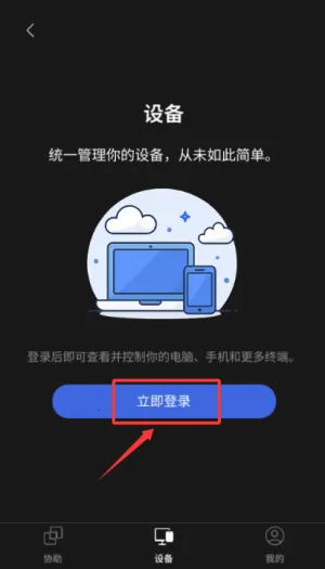 2、在设备页点击立即登录,跳转至页面后输入手机号。
