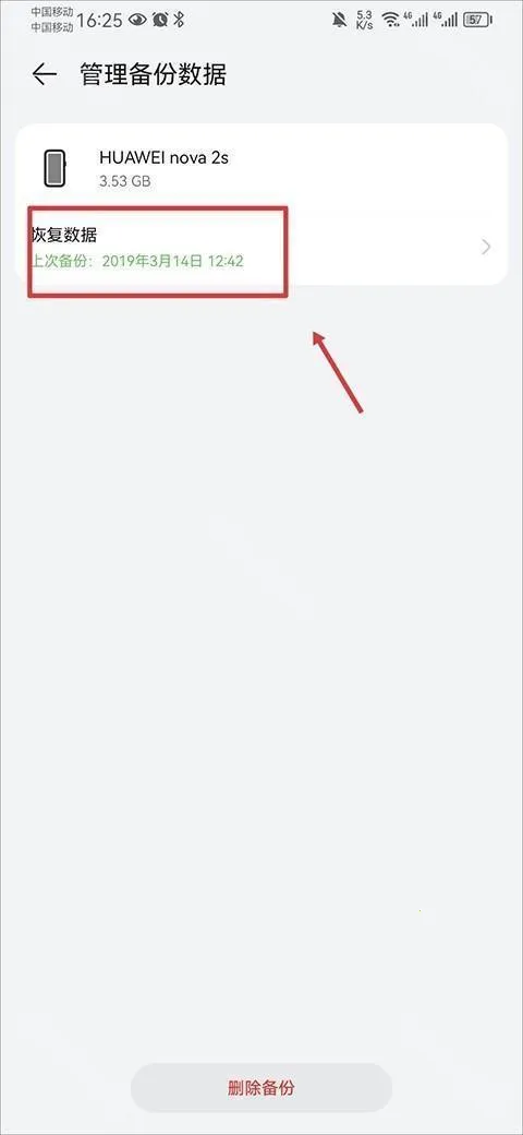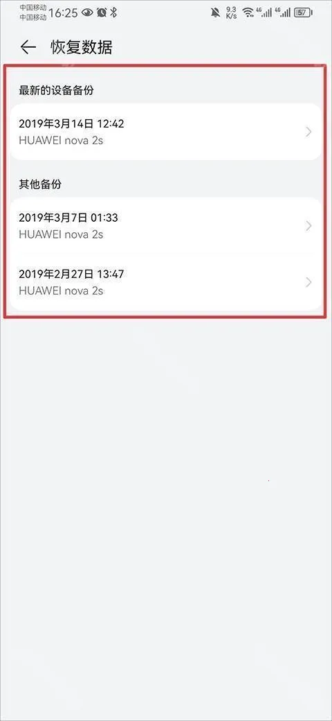 3、然后在恢复数据中的所有备份时间中,选择一个进行恢复。