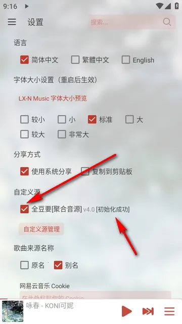 3、选择导入源,在特别说明中下载好音乐源后,导入到软件中。