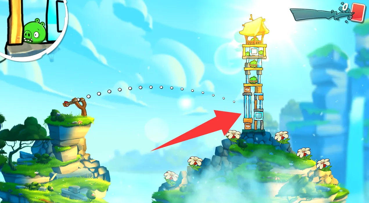 2、瞄准松手就可以发射了,对准那个支撑点。