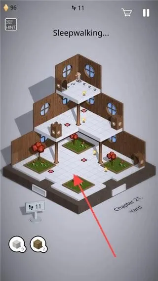 3、继续在【Sleepwalking...】场景中,按箭头指示点击地面方块。