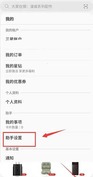 打开三星生活助手App,点击界面右下角的「我的」选项