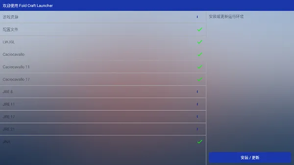 3、点击安装/更新,在线安装/更新运行环境。