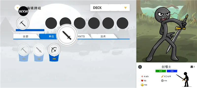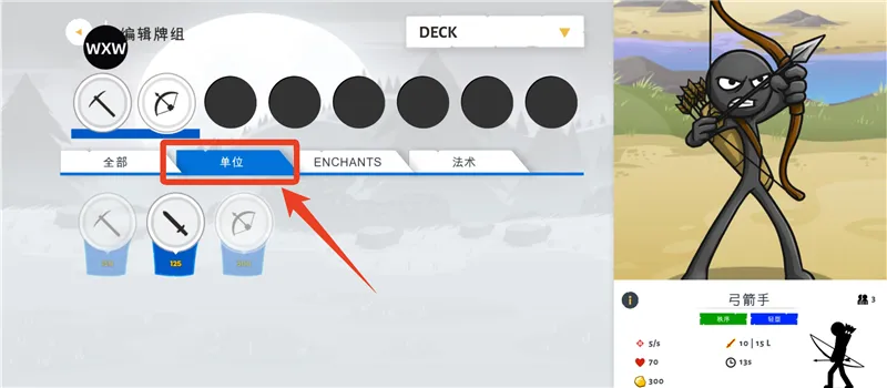 7、以上就是火柴人战争遗产3破解版手游怎么更换兵种的攻略,祝大家有一个强大的牌组!