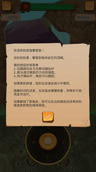 3. 提升技巧,解锁内容:玩家可通过不断提升操作技巧和攀爬能力,挑战更高难度山峰,解锁更多攀岩冒险内容。