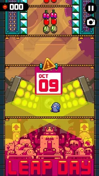 天天飞跃是Nitrome推出的跳跃闯关游戏,像素画风独特。每天自动生成新关卡与怪物,玩法简单有挑战。玩家跳跃收集水果激活存档点,达奖杯点可获日历标记,还有无尽模式,配乐欢快,色彩清爽。